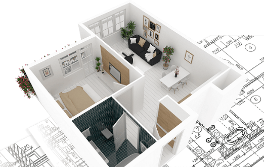 Полный дизайн проект с чертежами и визуализацией - 2500 рублей за 1м2.